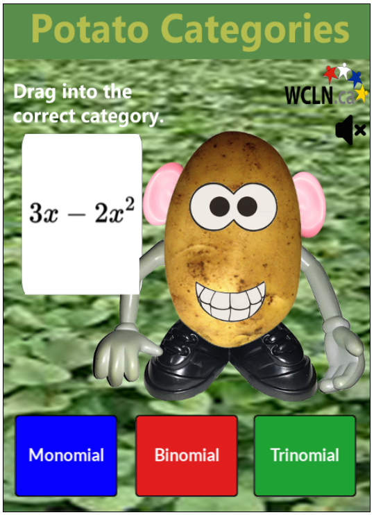 3 Categories, 5 Items to Categorize (wcln/potato_categories3)